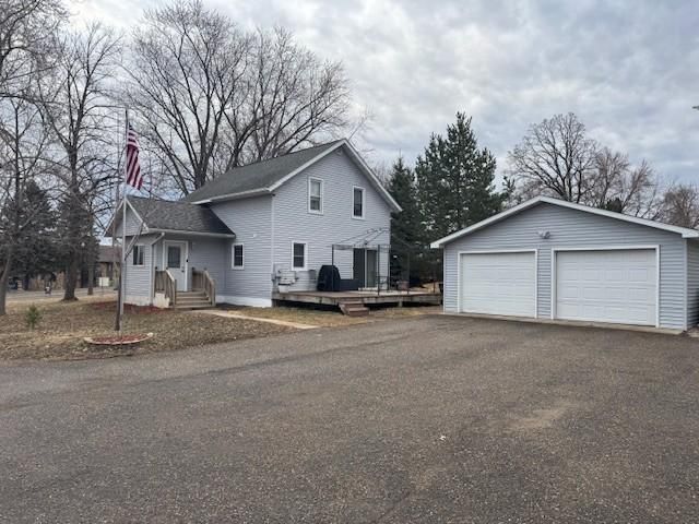 Welcome to this thoughtfully updated two?story home set on a private, oversized half acre lot with mature trees and a generous setback from the road. This low maintenance 2-bedroom, 1.5 bath property offers a large asphalt driveway with parking for 4+ vehicles, an oversized 24??28 garage, and a 10??10 storage shed. Enjoy your morning coffee on the large maintenance-free composite deck.Inside, the home blends fresh updates with preserved original character. Many of the original plaster walls remain intact, and care has been taken to maintain the home's charm wherever possible. Smooth ceilings add an airy, open feel to the living spaces, complemented by fresh paint and new flooring on the main floor. The updated kitchen with new appliances opens to a spacious dining room, while the living room offers a beautiful electric fireplace that adds warmth and ambiance.The expansive primary bedroom includes an oversized walk in closet and a comfortable sitting area. The updated full bath provides plenty of space as well. At the staircase, a preserved section of original wallpaper offers a tasteful nod to the home's history. The second bedroom offers a comfortable and inviting space, complete with a walk-in closet for ample storage. The unfinished basement is ready for future expansion, complete with an egress window already installed. Additional updates include a new roof and furnace (2018) and professionally installed drain tile with a transferable warranty.