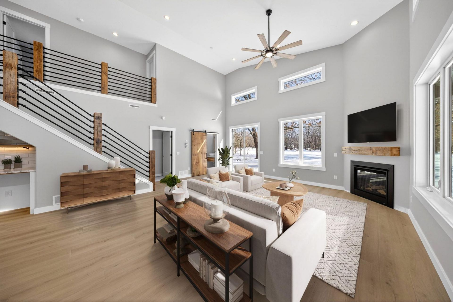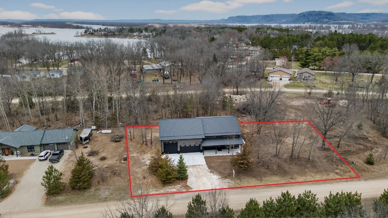 Custom built barndominium in Prairie Sands offering refined modern design, exceptional functionality, and conveniently located near the Mississippi River! This 3 bedroom, 3 bath two story home features 1,706 finished square feet and an impressive 1,440 square foot attached garage. The main level is anchored by a dramatic great room with soaring 22 foot ceilings and a gas fireplace, creating an open and inviting focal point. The kitchen is designed with custom cabinetry, granite countertops, center island, and stainless undermount sink. A patio door off the dining area leads to a concrete patio, extending the living space outdoors. The main floor primary suite offers a private bath with double sinks and a tile shower, along with convenient main floor laundry and guest half bath. Upstairs, two additional bedrooms and a full bath provide comfortable separation. Built for longevity and efficiency, the home features steel siding and roofing, frost protected shallow foundation, zero entry access, hydronic in floor heat in both the living area and garage, high efficiency furnace, central air, and radon control system. The insulated 1,440 square foot garage is a standout feature with 18 x 8 and 12 x 12 overhead doors, offering exceptional storage for vehicles, recreational equipment, or workshop space, perfectly suited for enjoying the nearby river and valley surroundings. This beautiful home is in the final stages of construction and will be ready for occupancy soon.